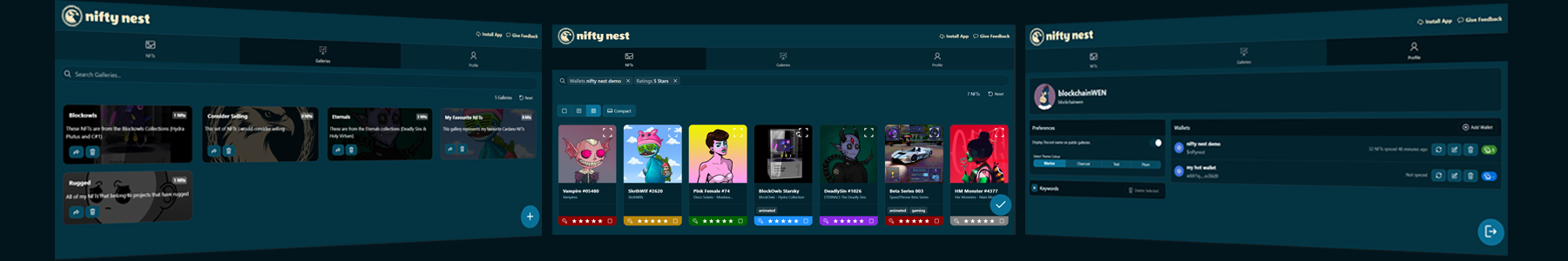 Nifty Nest helps users collect, organize, and showcase their NFTs. It is currently integrated into the Cardano blockchain.
